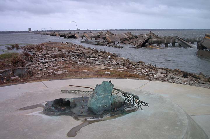The Route 90 bridge to Ocean Springs lies in ruins.
